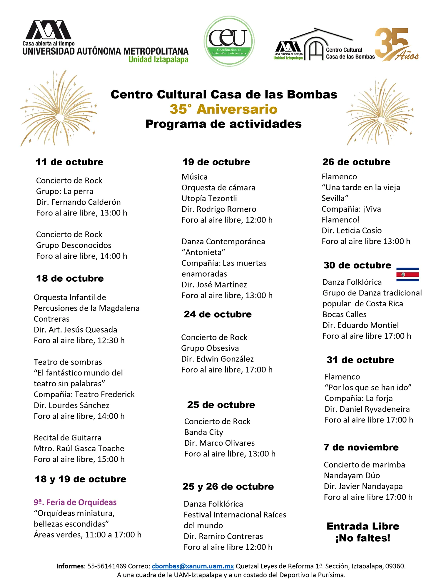 #CasaDeLasBombas #UAMIztapalapa #CulturaUAM #FeriaDeLasOrquídeas #Aniversario35 #ArteYComunidad #EntradaLibre