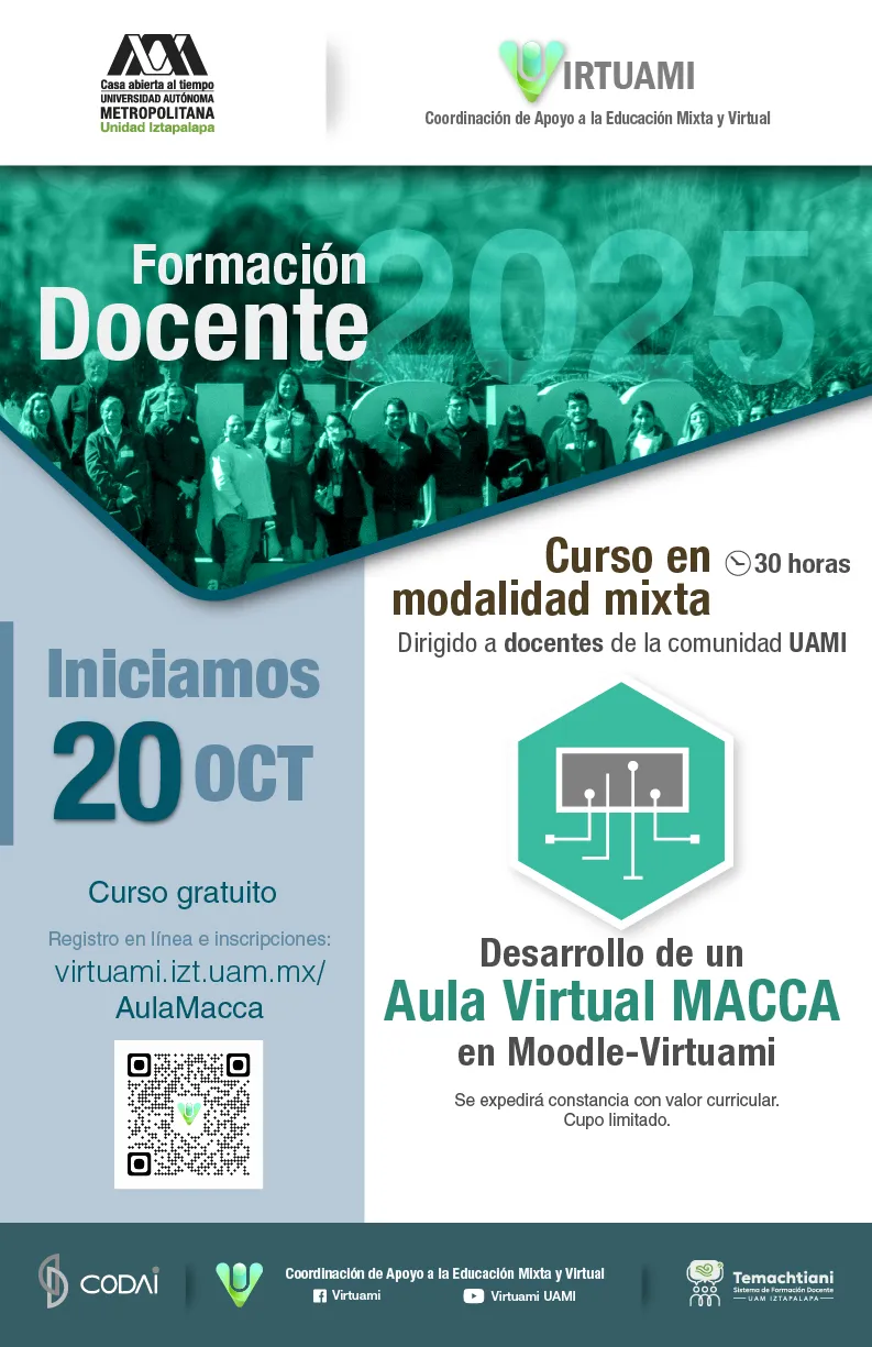 Objetivo: Desarrollar un aula virtual en la plataforma Moodle-Virtuami, tomando en consideración su configuración en la plataforma y los principios pedagógicos del Modelo de Construcción Colaborativa de Aprendizaje (MACCA).