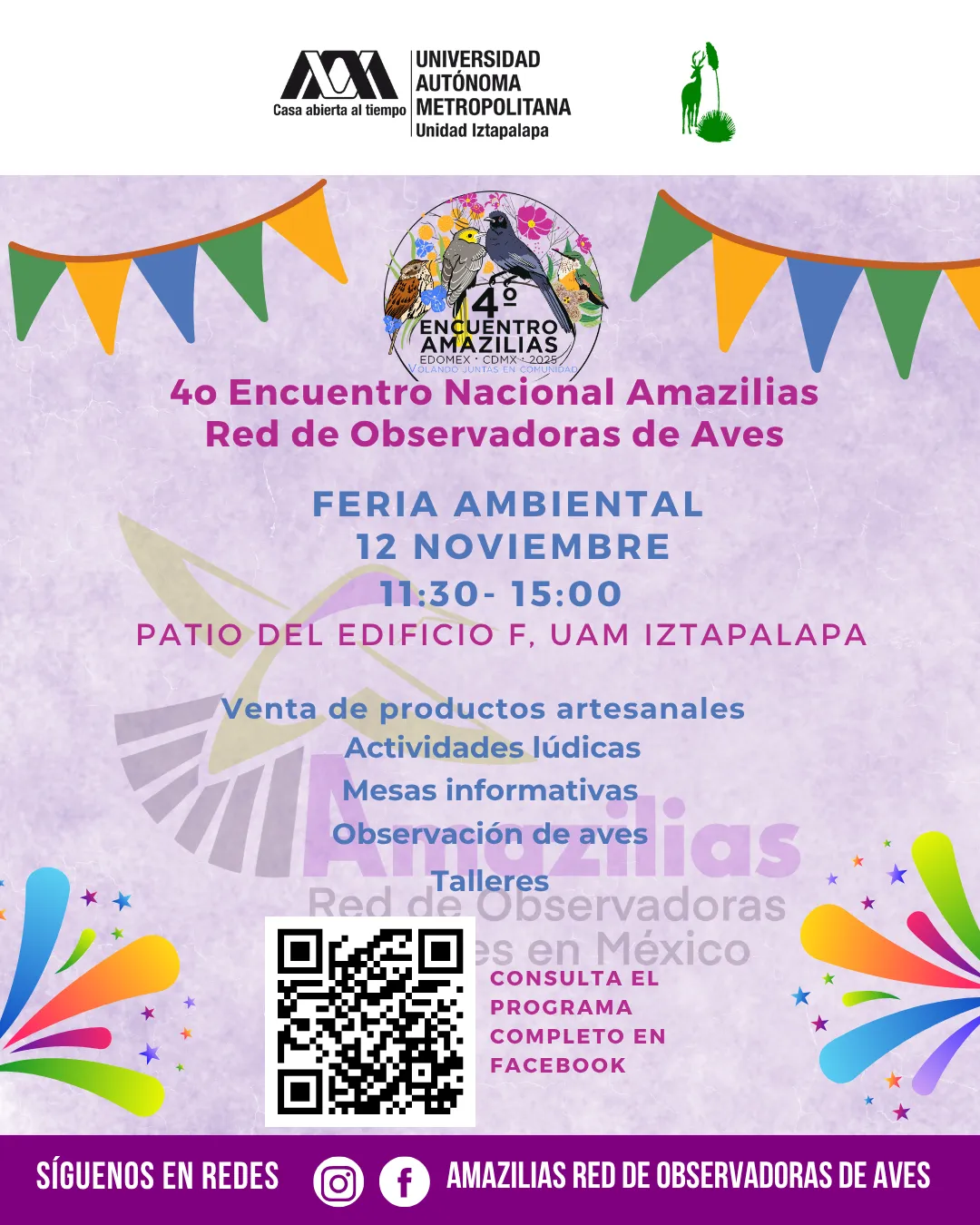 El evento reúne a mujeres de todo el país, incluyendo profesionistas, observadoras de aves, asociaciones civiles, brigadistas, monitoras comunitarias, estudiantes, representantes de colectivas e integrantes de Amazilias Red de Observadoras de Aves. El programa incluye una conferencia magistral, presentación del libro: “Las mujeres cuentan: vivencias en torno al monitoreo de aves en comunidades rurales e indígenas de México”; una feria ambiental, mesas de trabajo, un taller de autocuidado para mujeres y un viaje de observación de aves en Milpa Alta.