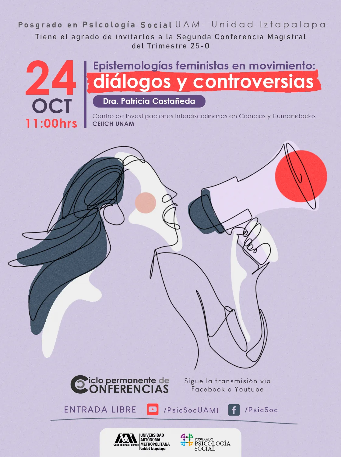 En el marco del Ciclo Permanente de Conferencias del Posgrado en Psicología Social de la UAM-I, extendemos la invitación para que sigan la transmisión en vivo de la Conferencia Magistral del Trimestre 25-O, que se llevará a cabo el viernes 24 de octubre a las 11:00 hrs.: